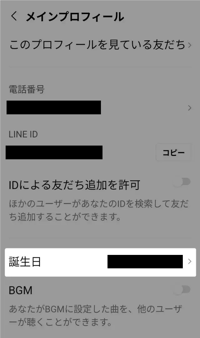- ホーム画面や友だちリストに自分の誕生日が表示されてしまう。