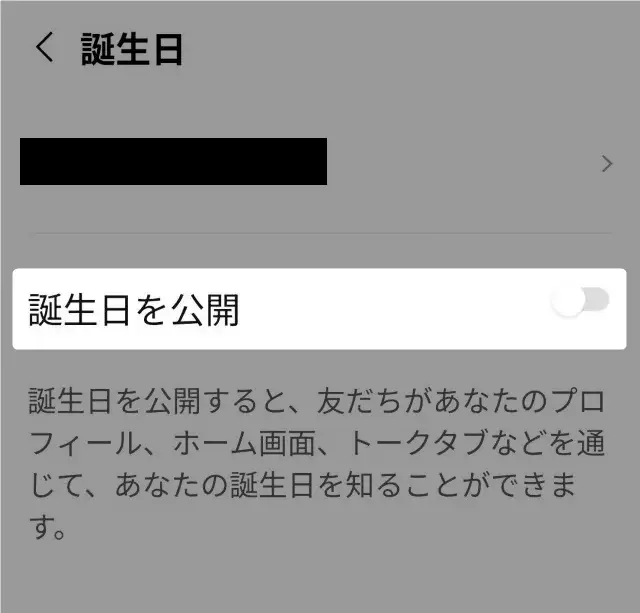 - 誕生日を非公開にする方法:上記のプロフィール編集画面で「誕生日を公開」をOFFにすると、友だちの画面に「今日が誕生日の友だち」として表示されなくなります。