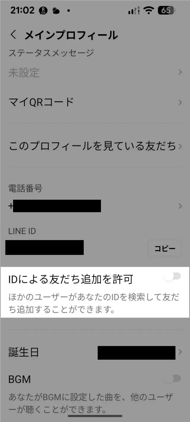 - 友だちへの追加許可をオフにする:自分の番号を知る人に勝手に追加されるのを防ぐためです。