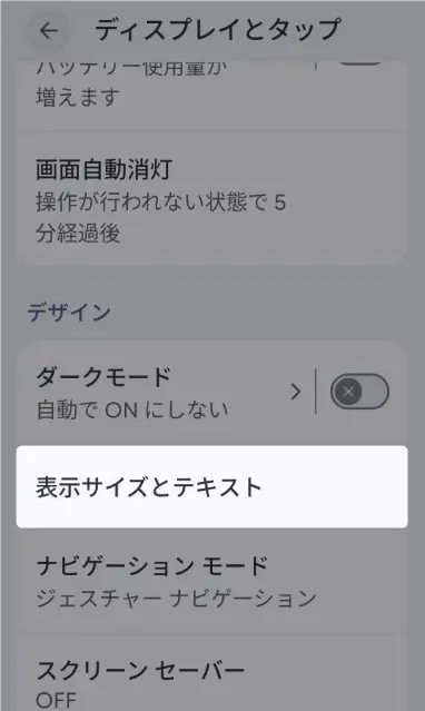 「表示サイズとテキスト」を選択