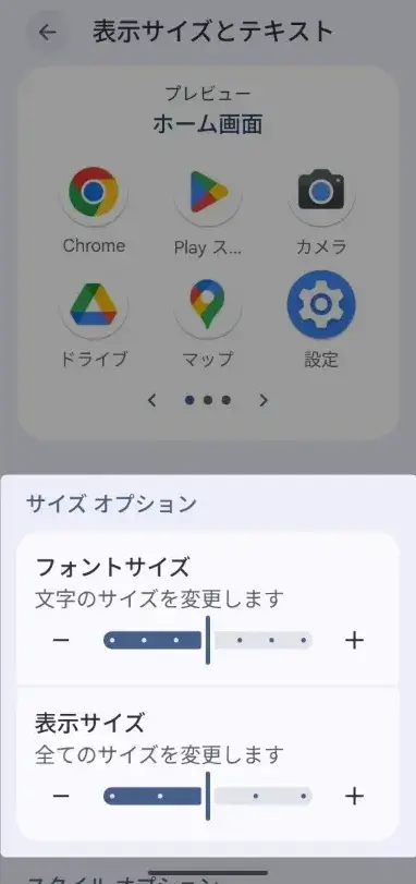 多くの機種では「設定 → ディスプレイ → 文字サイズ」という流れで進めば、スライダー形式で文字の大きさを調整できます。