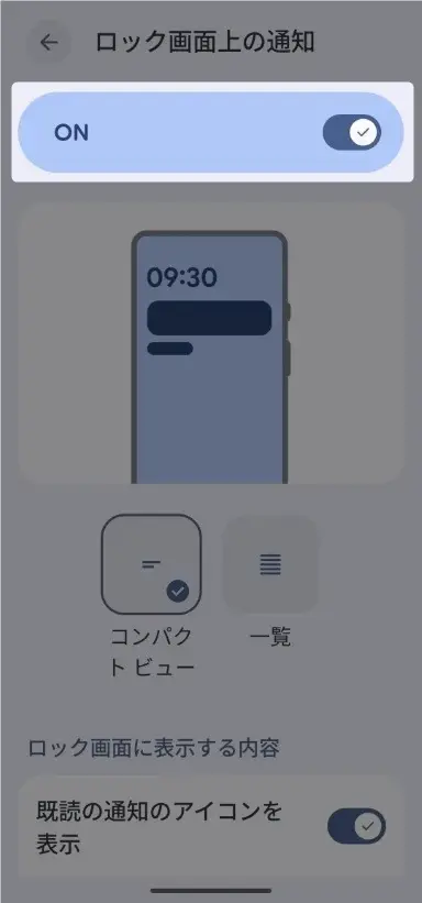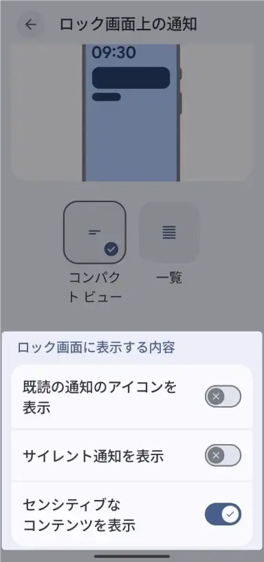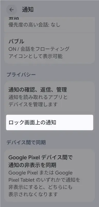 また、「ロック画面上の通知」からはスマホロック時の通知状態を設定することもできます。