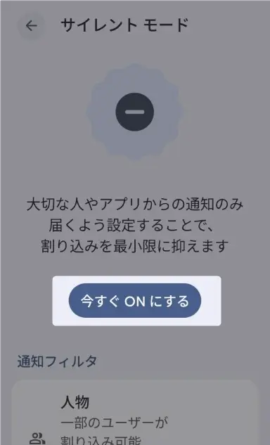おやすみモードを使えば、就寝時間や会議時間など、決まった時間帯だけ自動で通知を制限できます。
