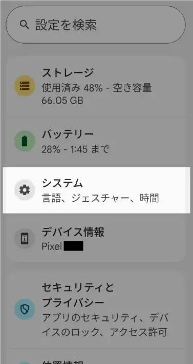 - OSアップデートは、設定の「システム」から行い、Wi-Fi環境かつ充電器に接続した状態で行う