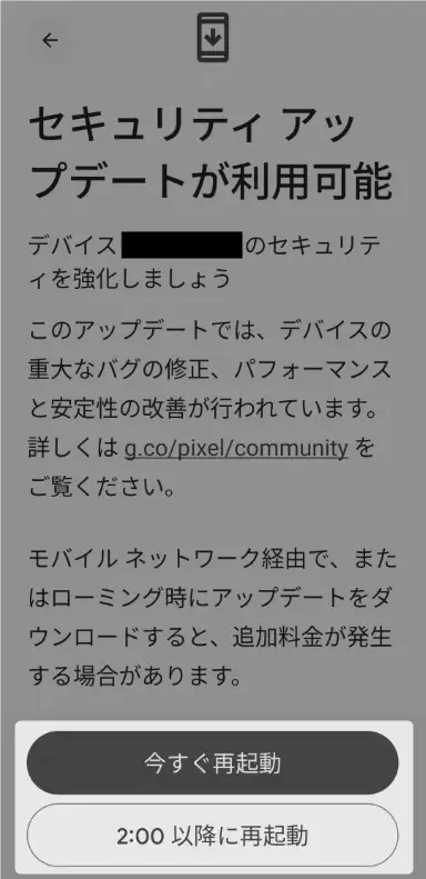 上記のように、OSのアップデートは端末を再起動する必要があります。